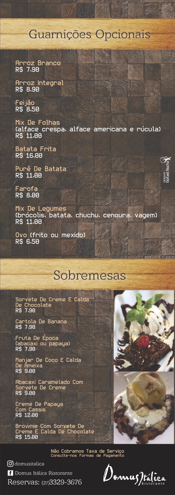 Almoço de 11h30 às 17h00 Não abre para o jantar